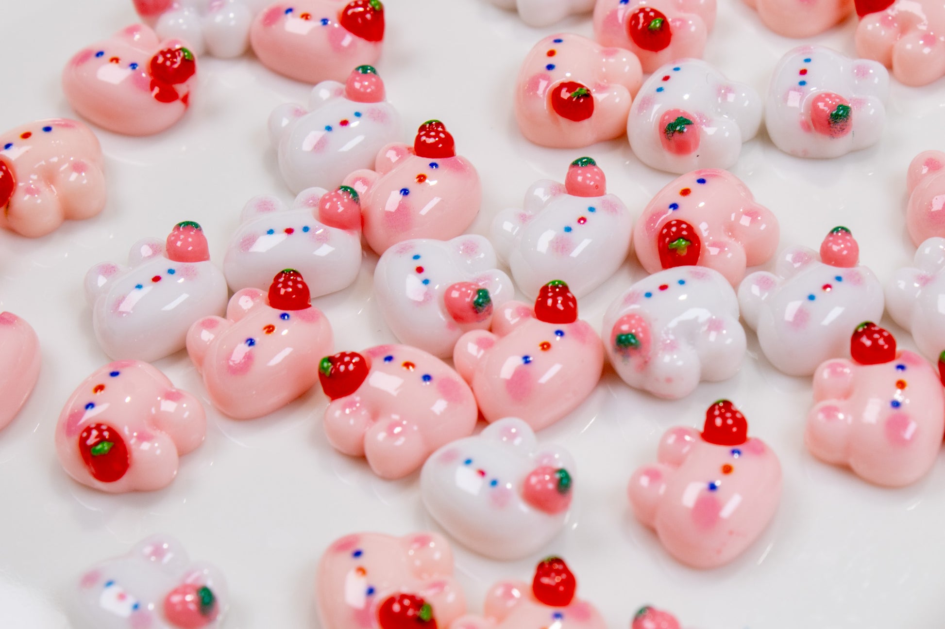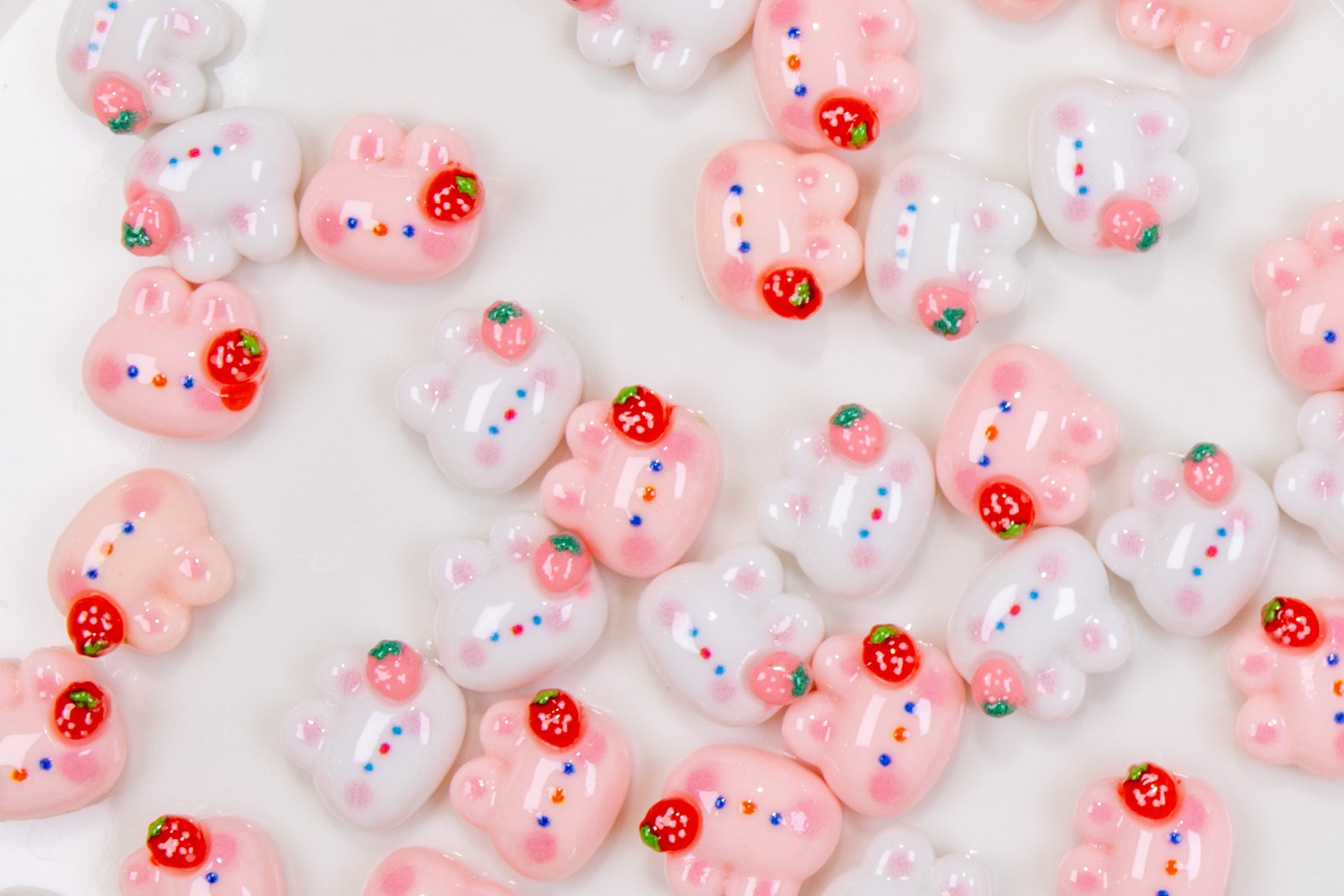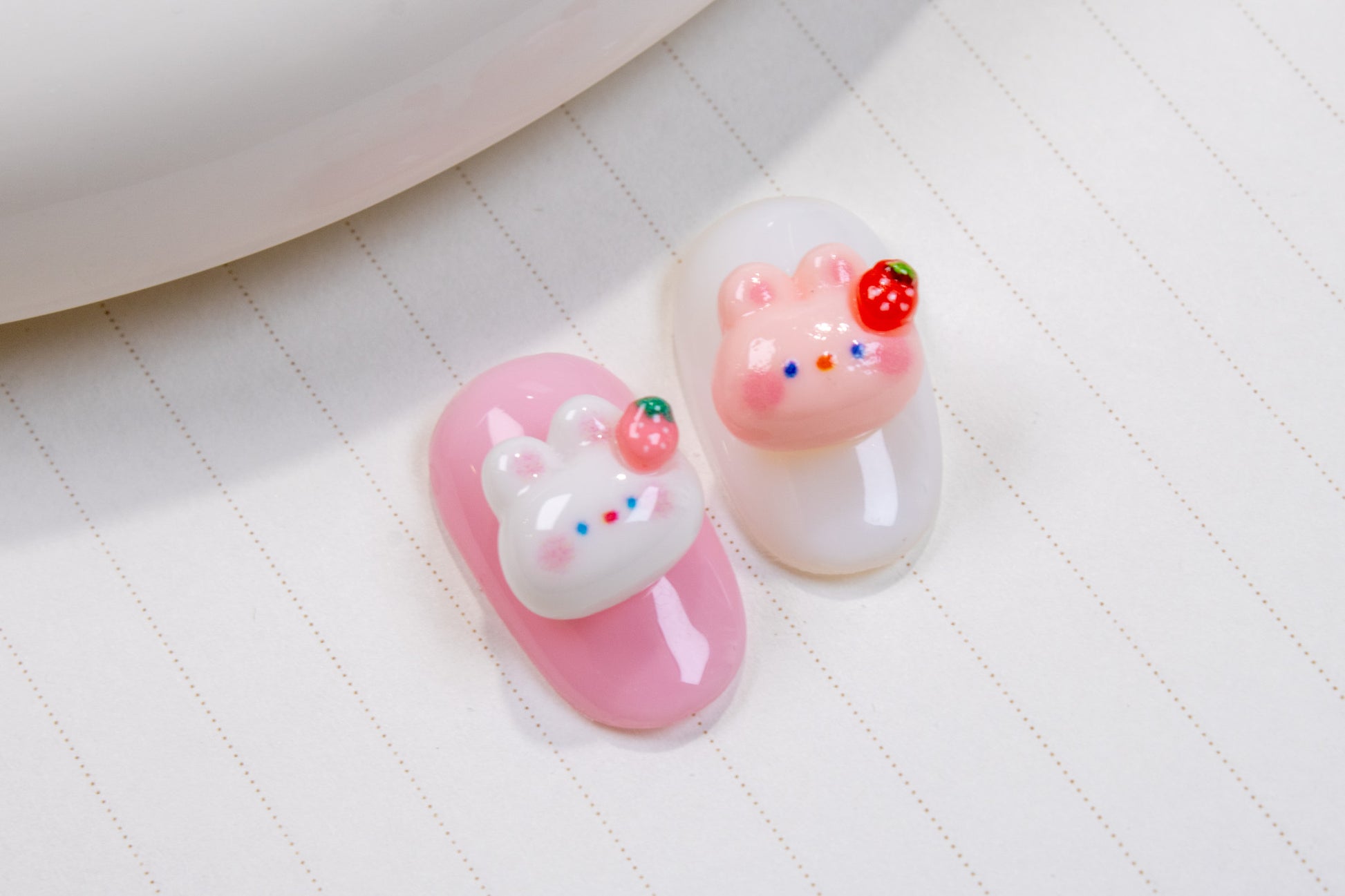Give your nails a juicy little makeover with these strawberry-topped bunny charms — perfect for soft, fruity, and irresistibly cute nail looks.