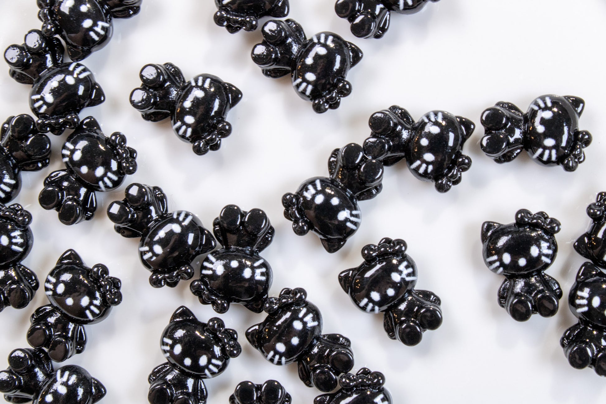- Includes glossy black kitty charm with white details or a matte black bow charm