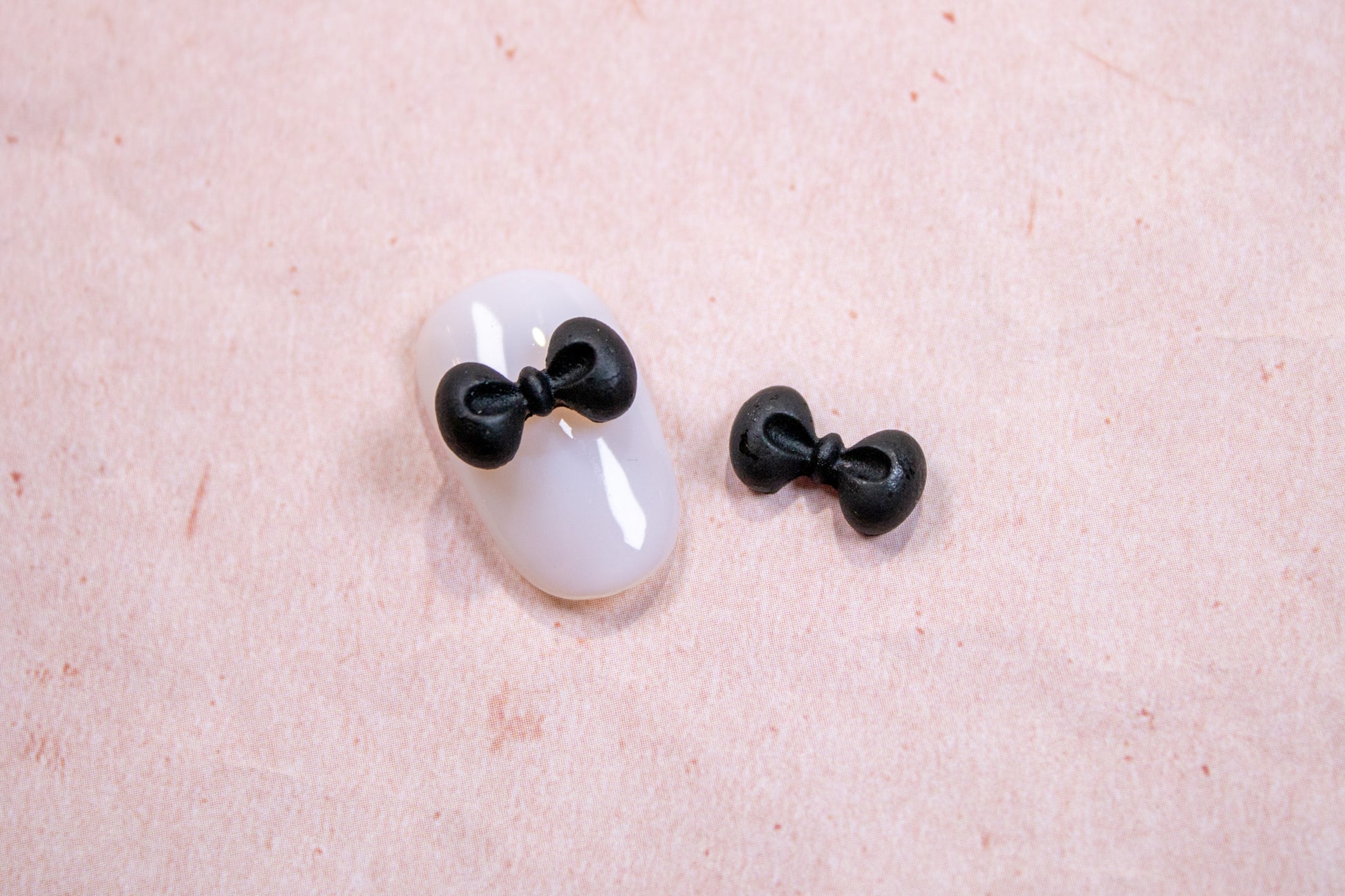Add a bold, playful twist to your nails with this black kitty and bow charm duo — perfect for edgy yet cute nail art looks.