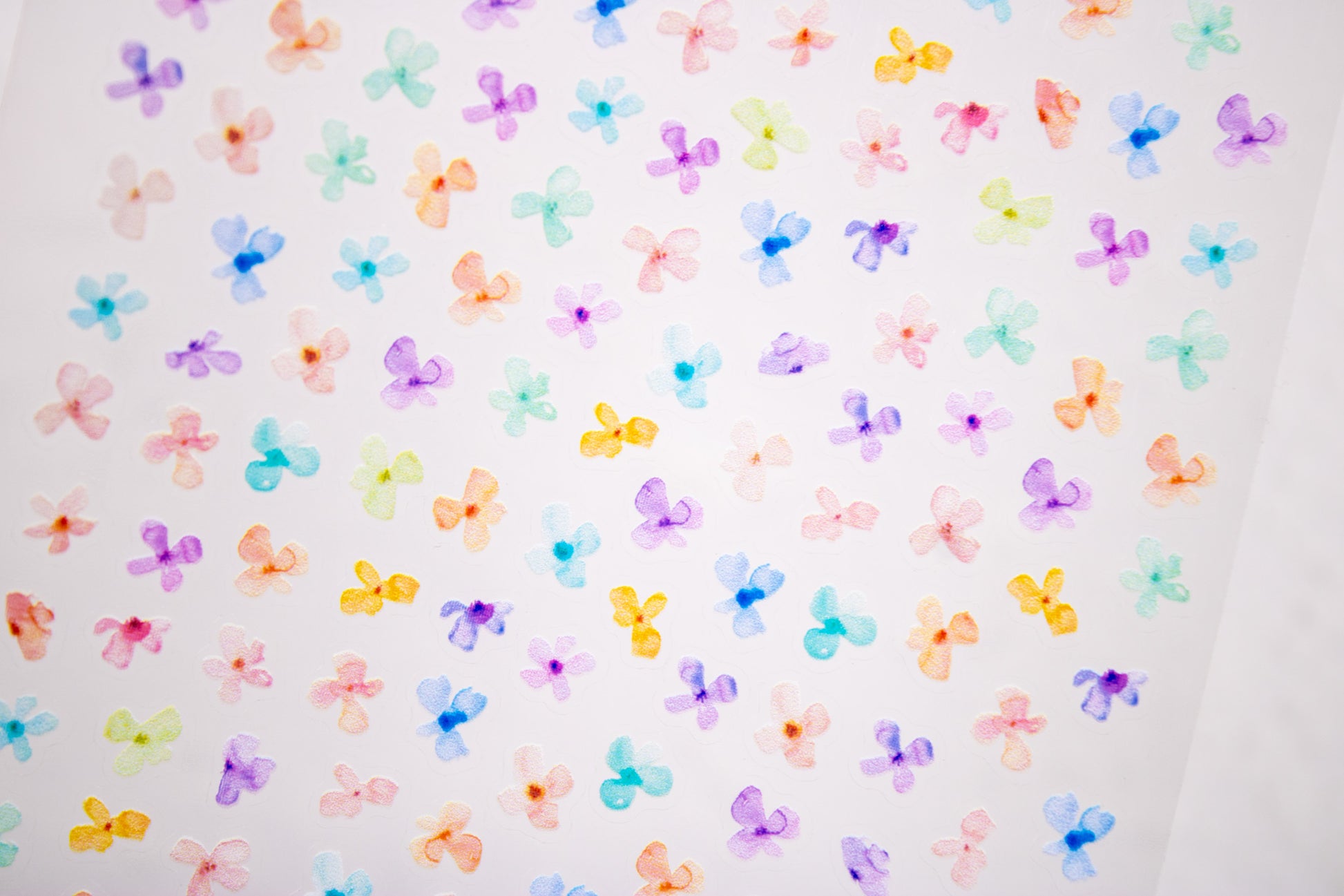 - Includes mini flowers in a mix of shapes and pastel pink, yellow, blue, green, purple, and orange shades