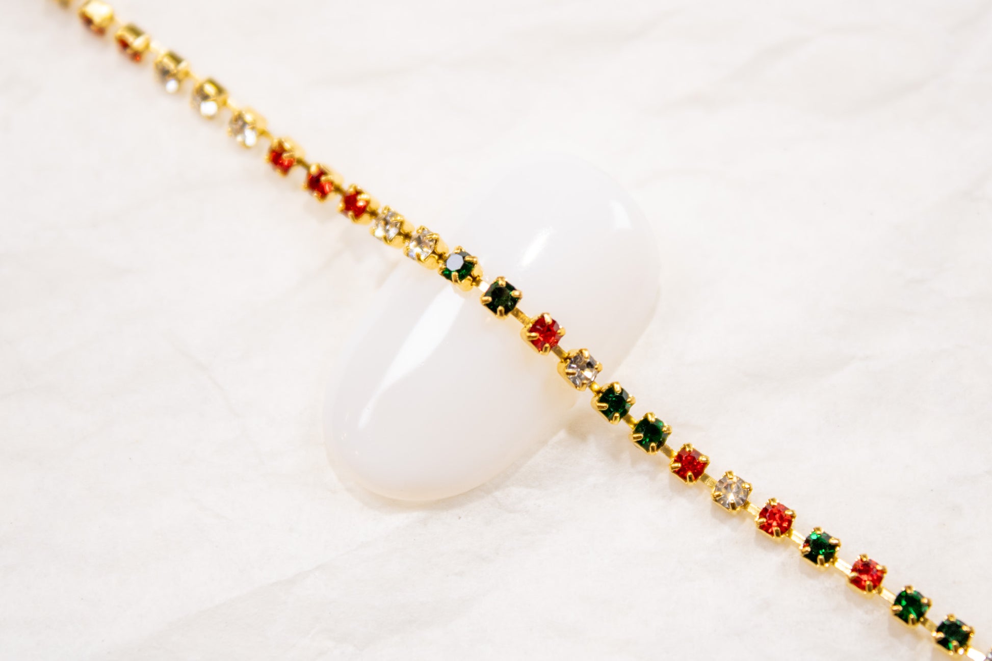 Add a festive sparkle to your nails with these 1.5mm red, green, and crystal gem chains — perfect for holiday designs that feel both classy and bold🎄 Shiny, lightweight, and easy to use for chic Christmas looks or glam accents.