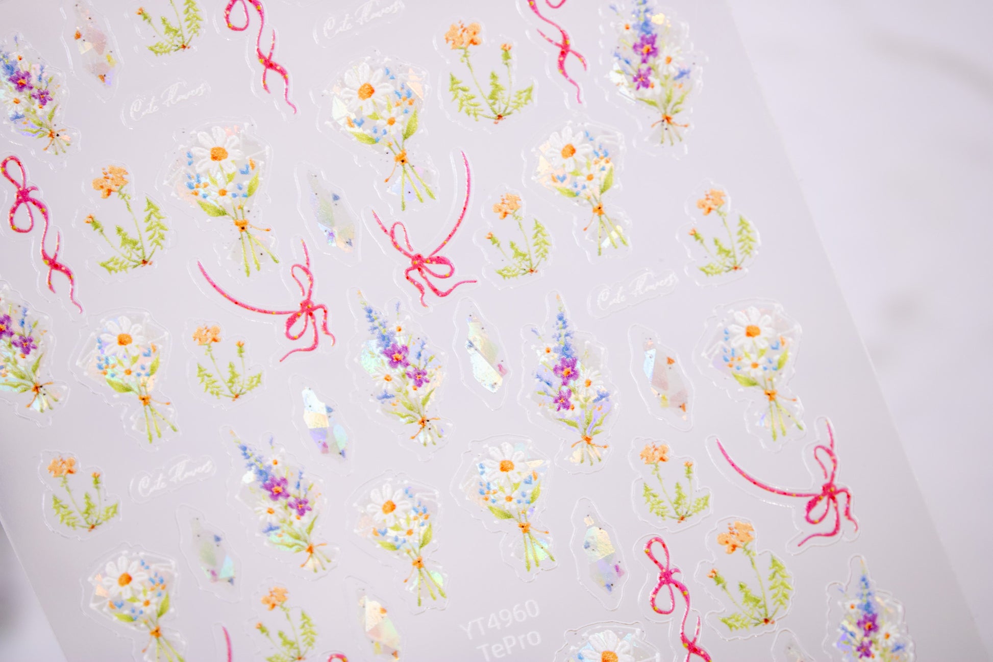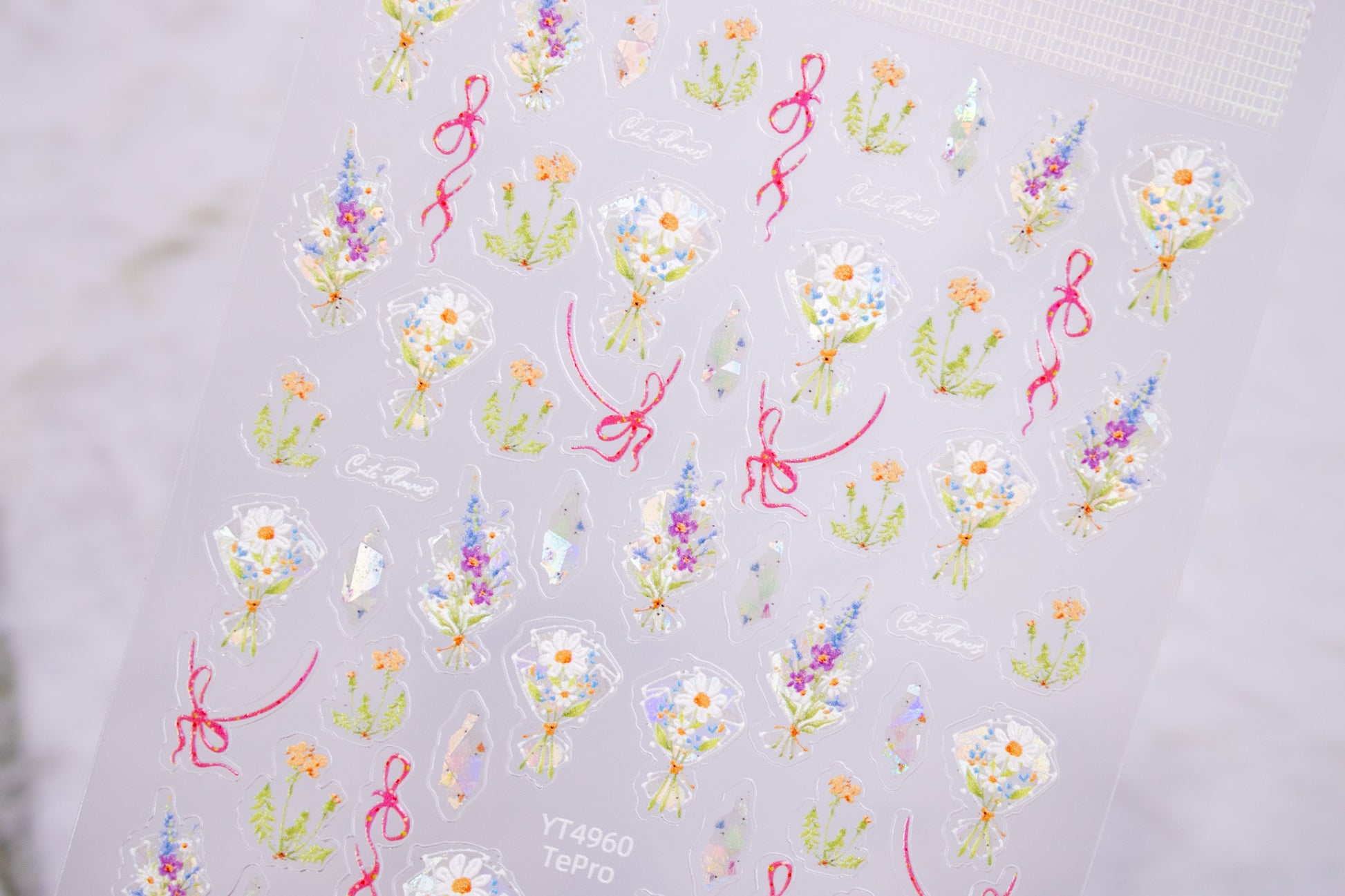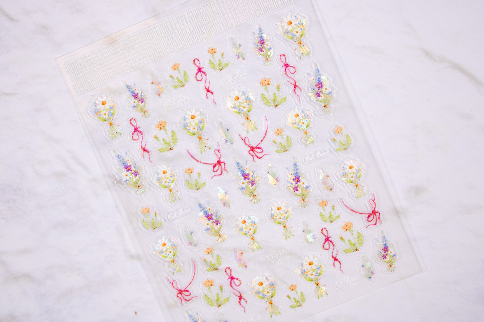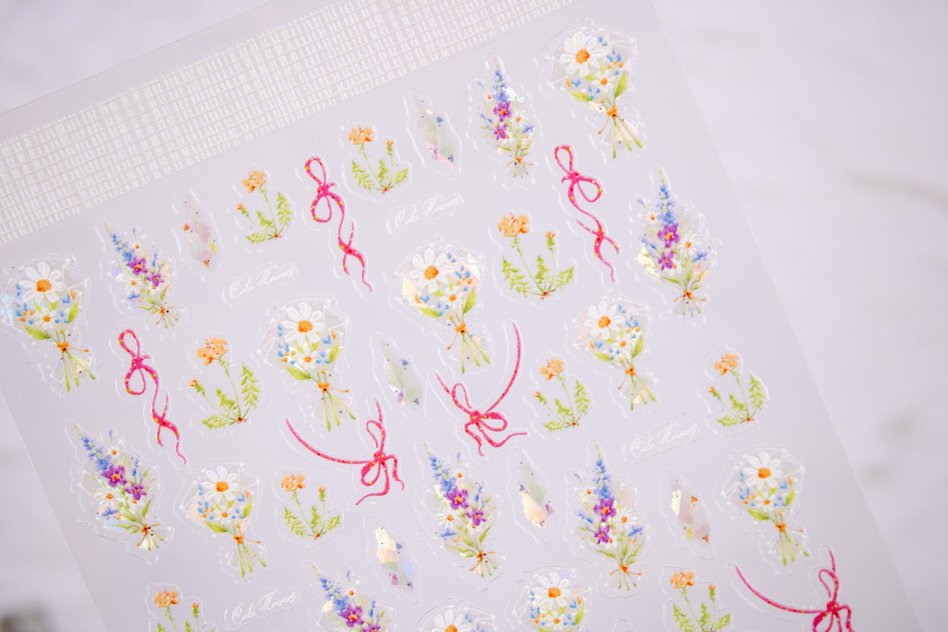 Bring garden charm to your nails with these bouquet-inspired stickers — soft watercolor flowers tied with pastel ribbons. Perfect for springtime, weddings, or dreamy floral nail looks.