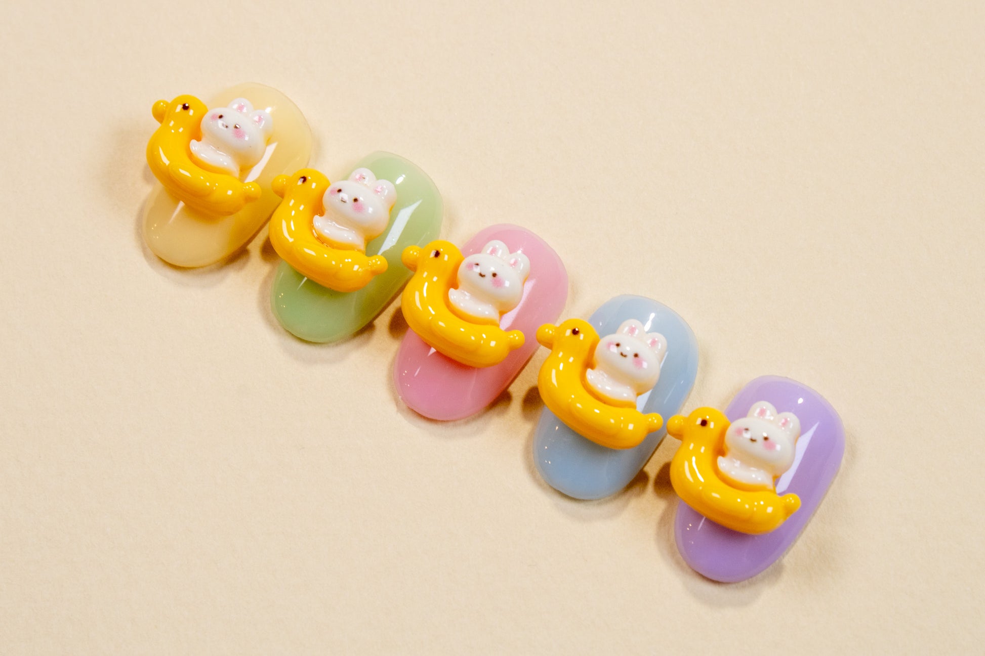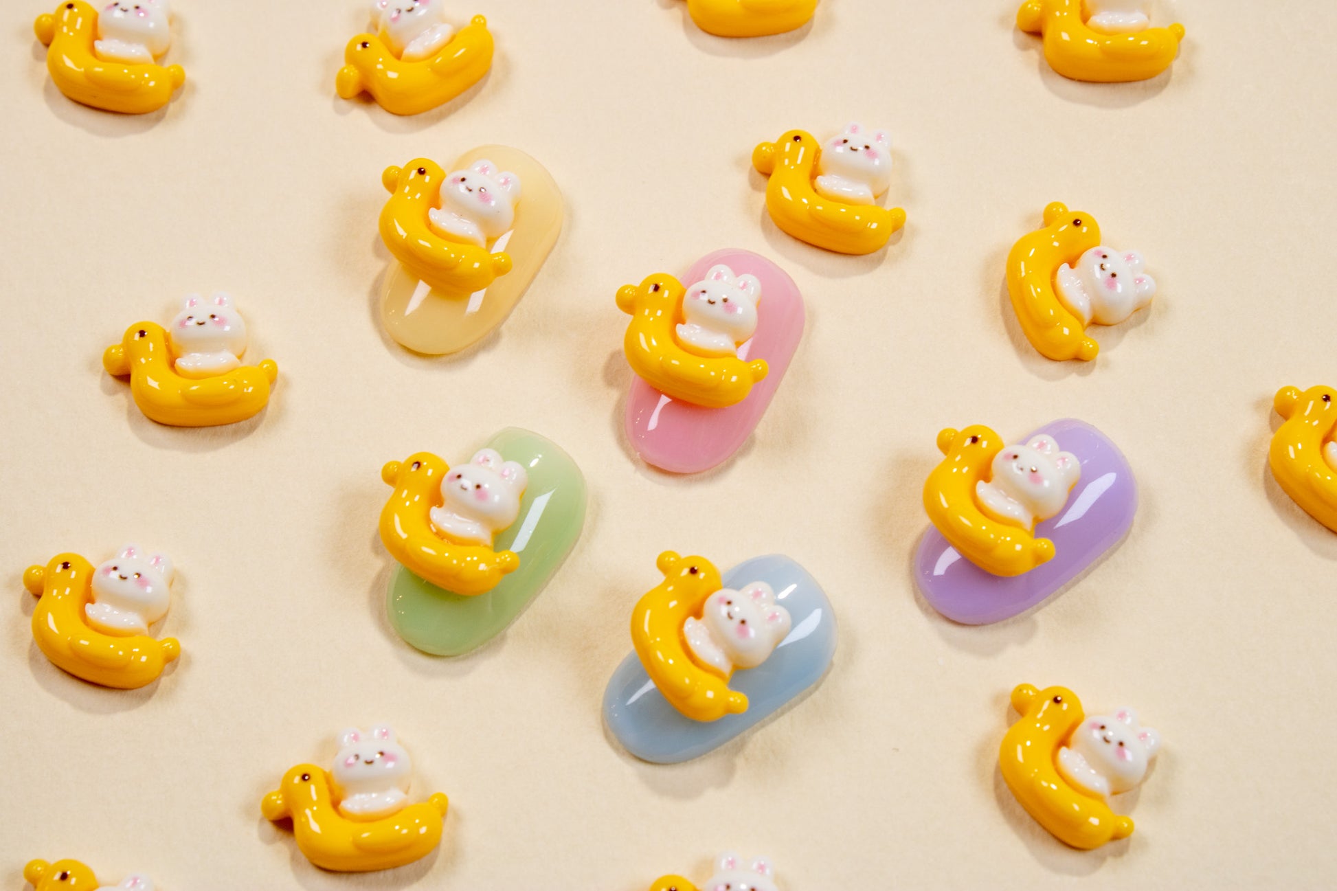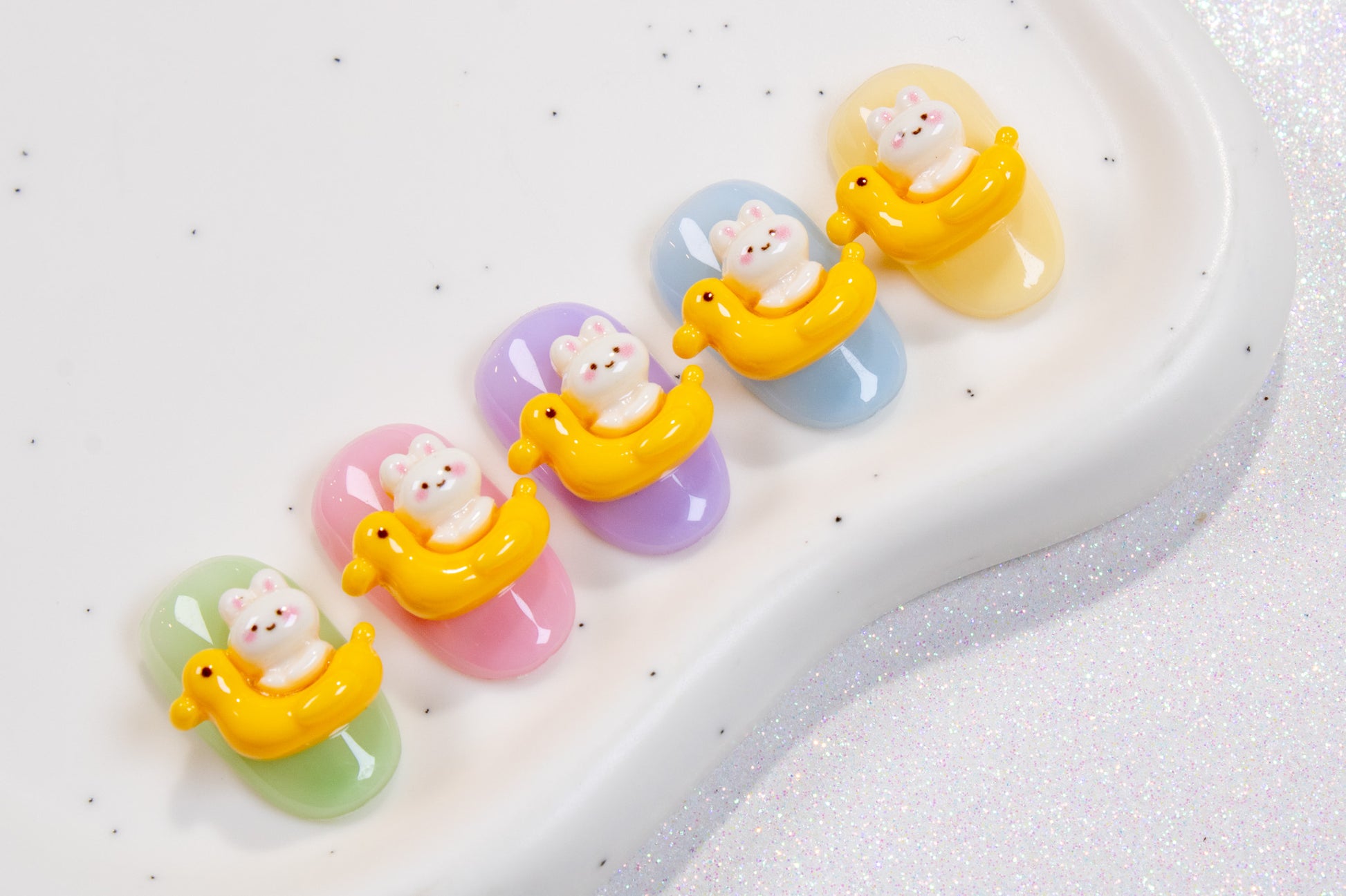 Make a splash with these adorable bunny-in-a-duck-floatie charms — perfect for fun summer nail sets with extra cuteness.