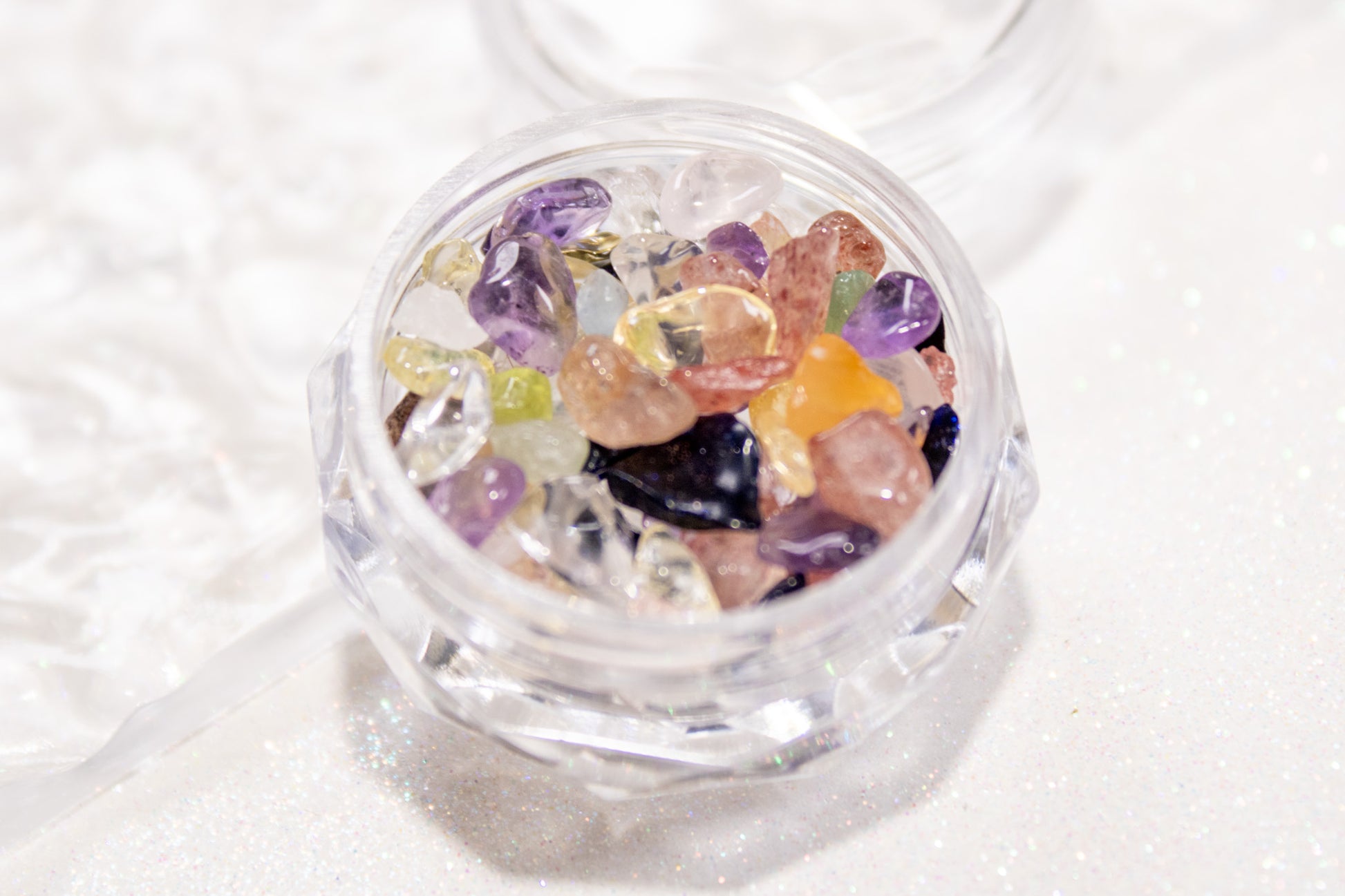 Bring whimsical crystal energy to your nails with this assorted mix of multicolor gemstone-style stones — perfect for fairycore, crystal girl, or mystical nail looks.