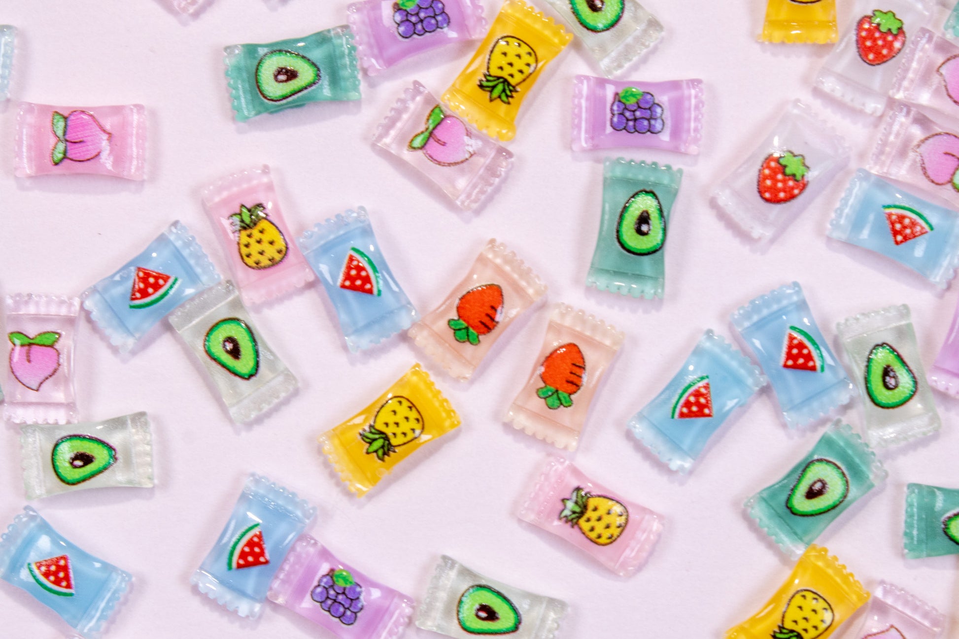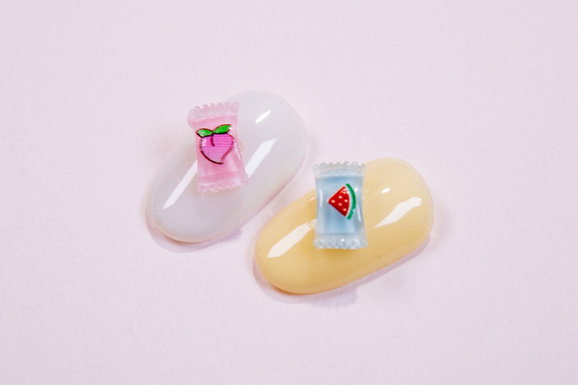 Sweeten up your nails with these tiny fruit-wrapped candy charms — perfect for playful, colorful, candy shop–inspired nail looks.