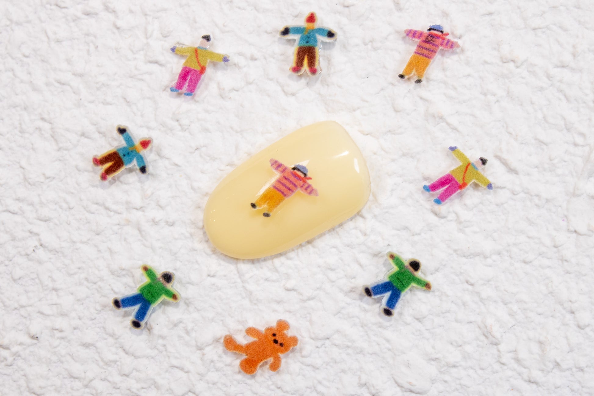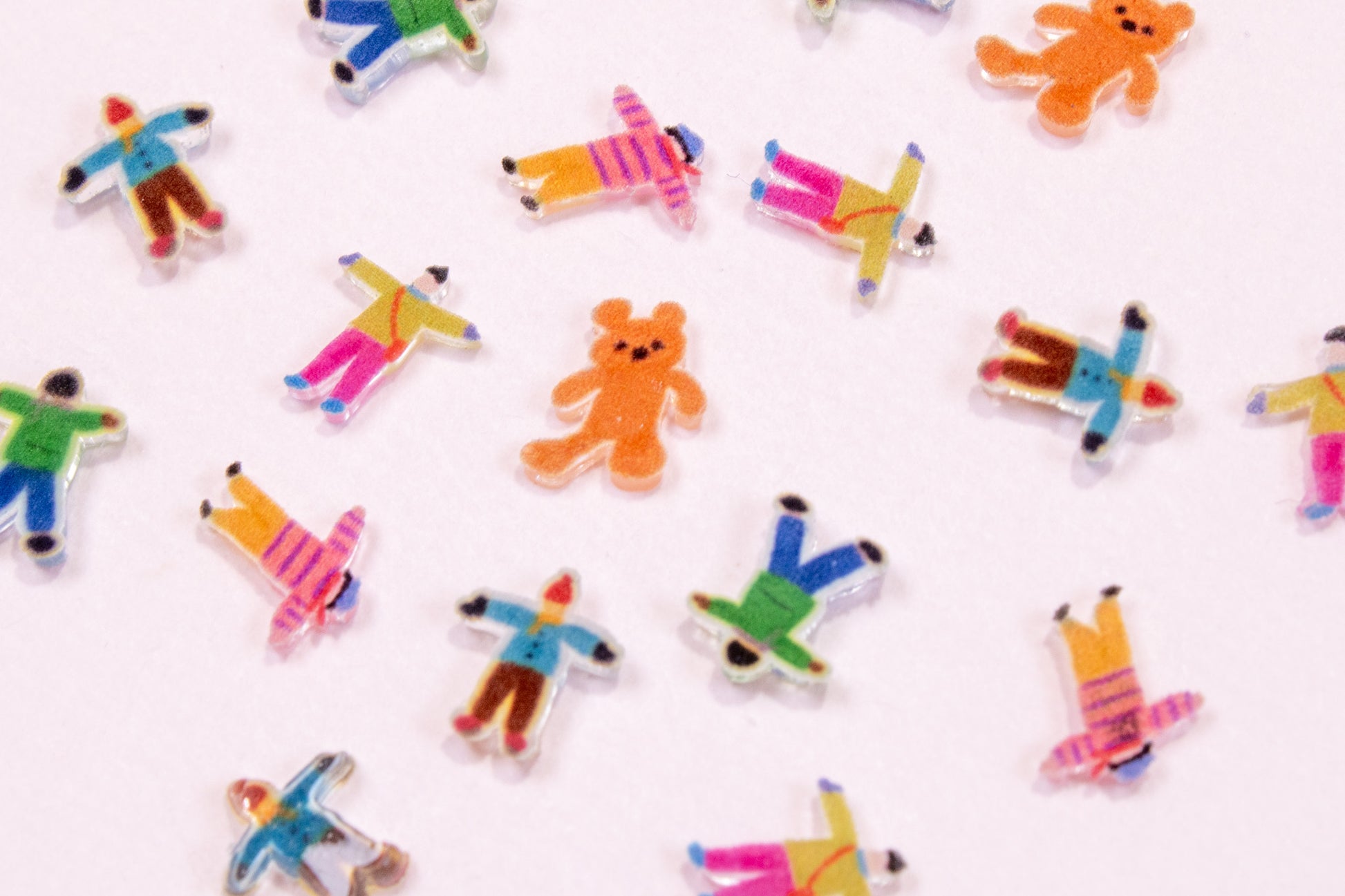 Add quirky personality to your nails with this illustrated charm mix — featuring tiny people and a teddy bear for playful, artsy nail looks.