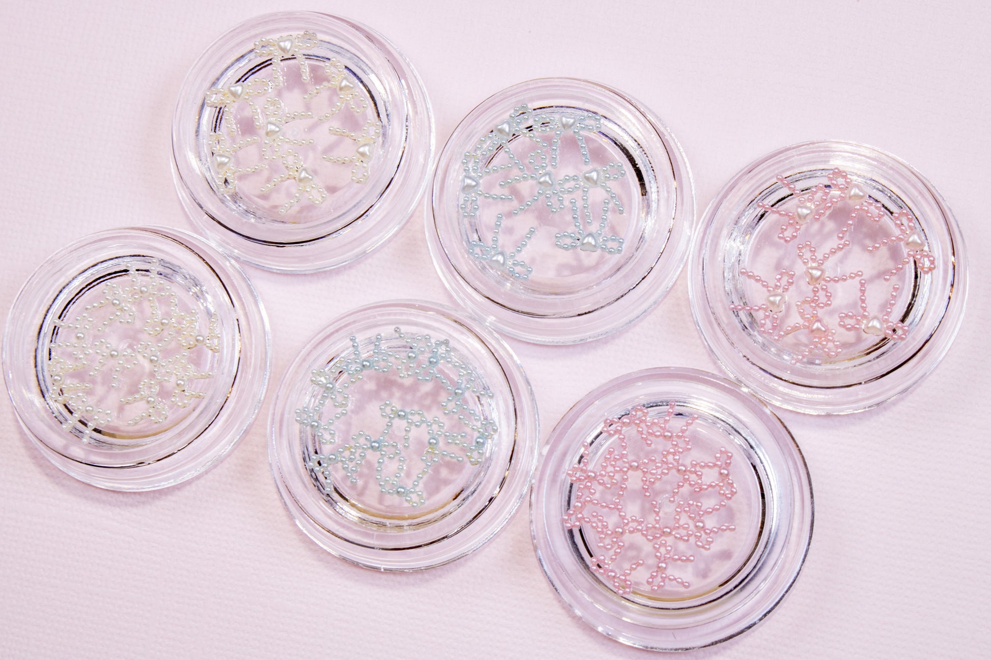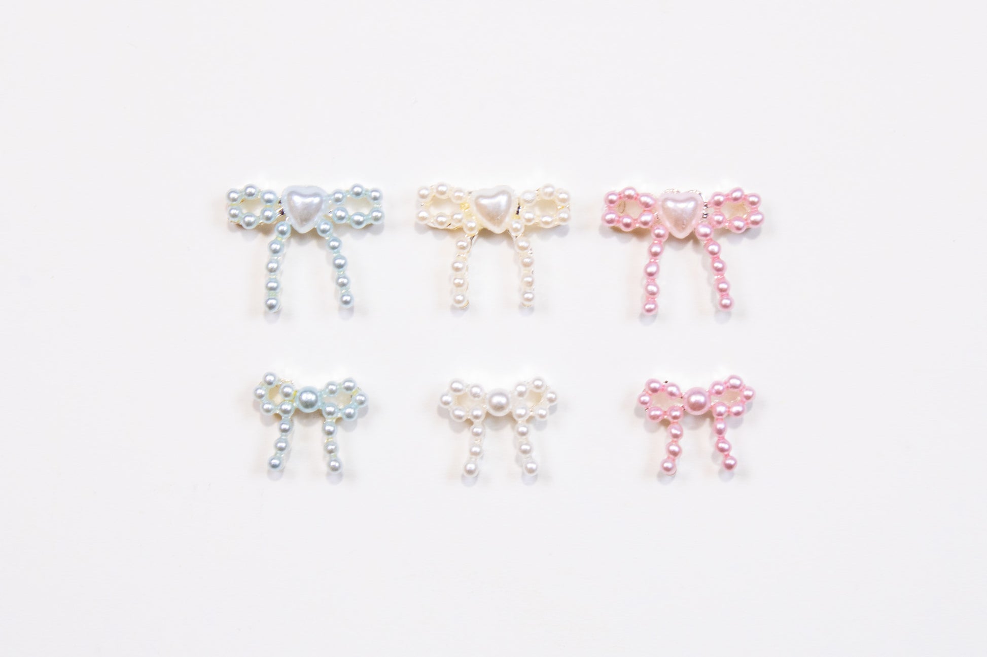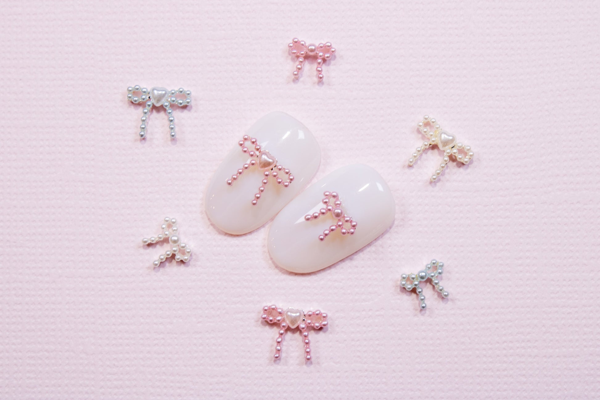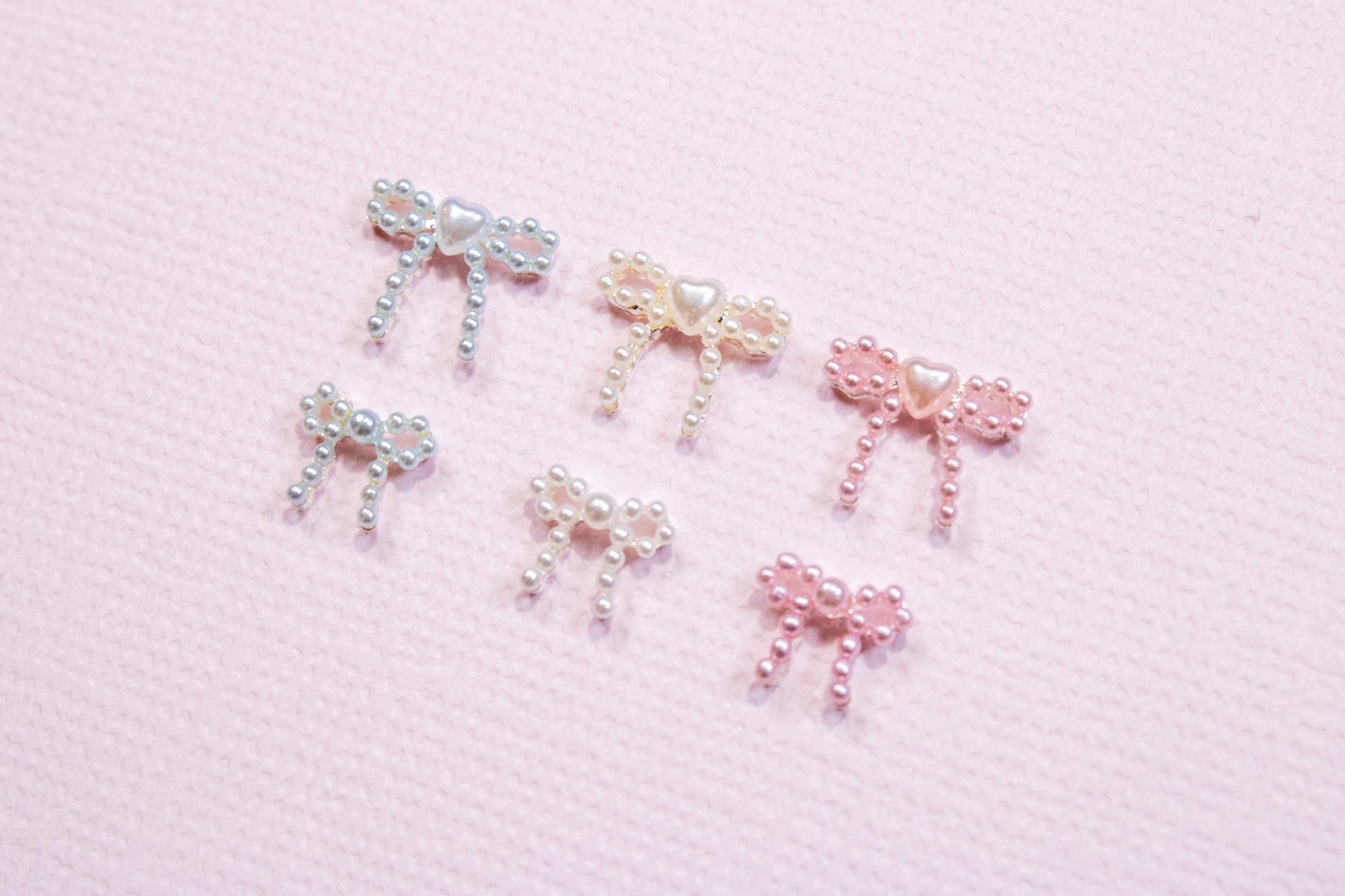 Sweeten your nails with these pearl bead bows — available in both large heart-center and small pearl-center designs for double the charm.