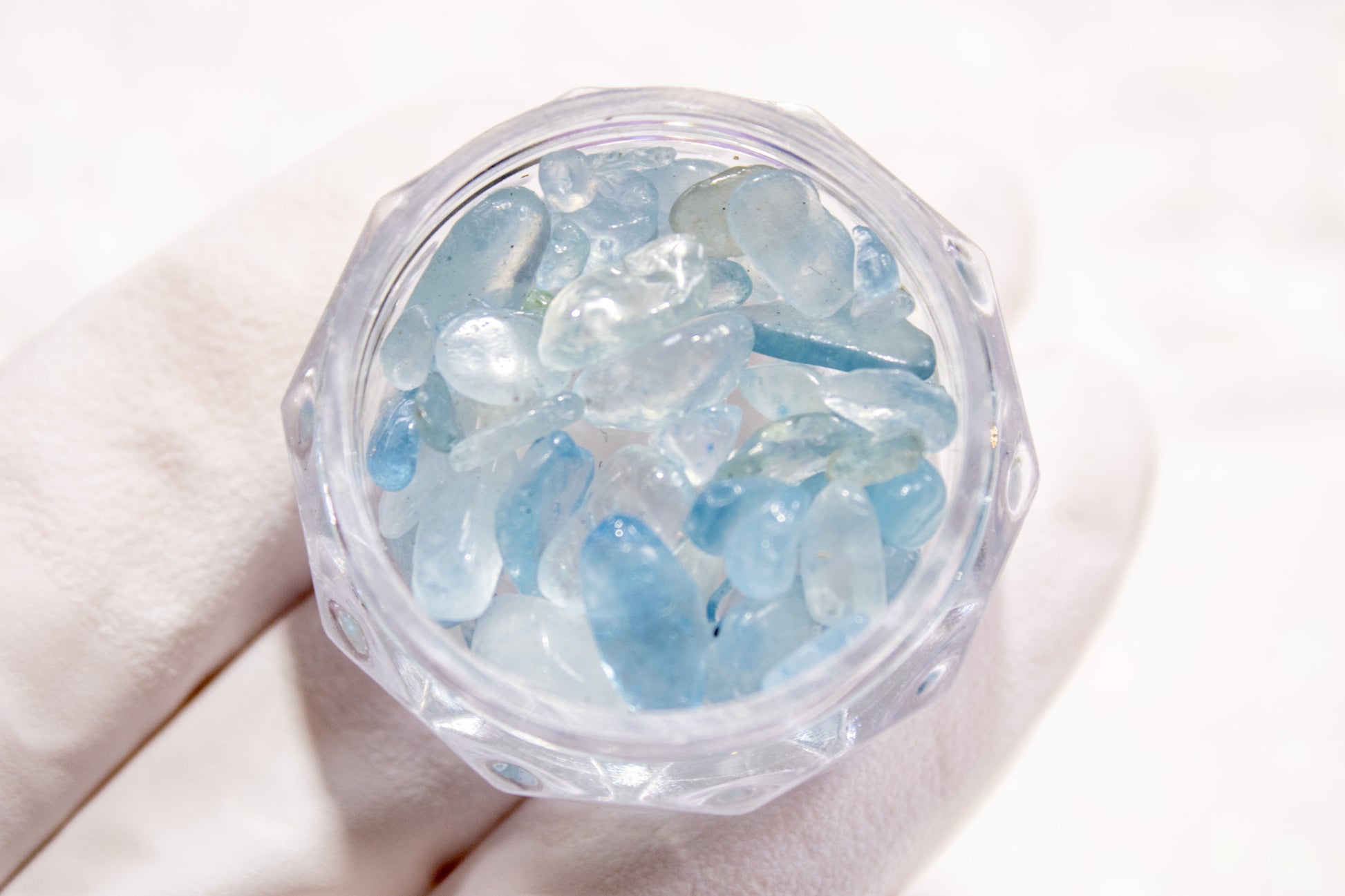 Add a dreamy, ocean-washed touch to your nail looks with these irregular blue sea-glass-style stones — perfect for mermaid or beachy designs.