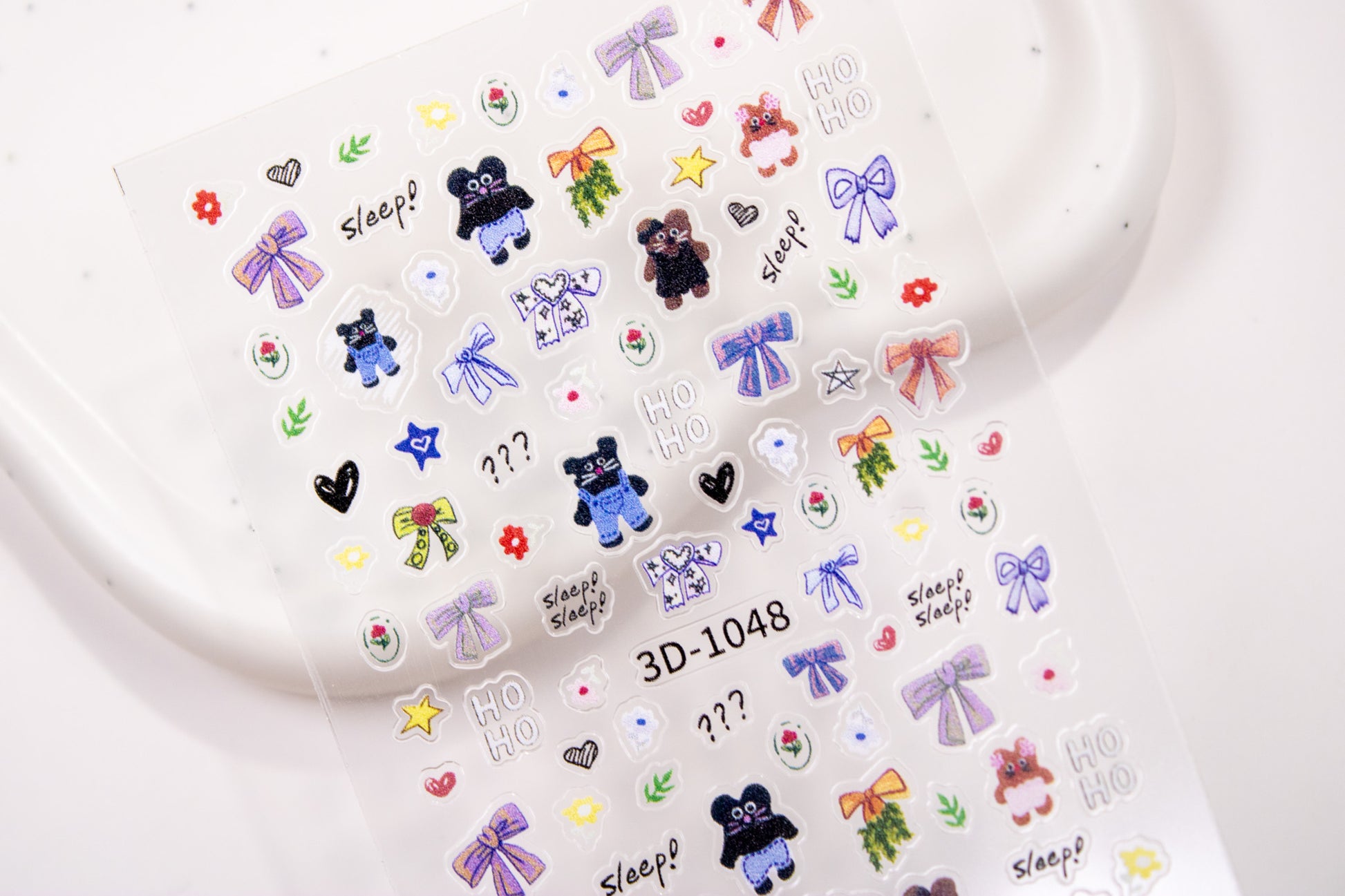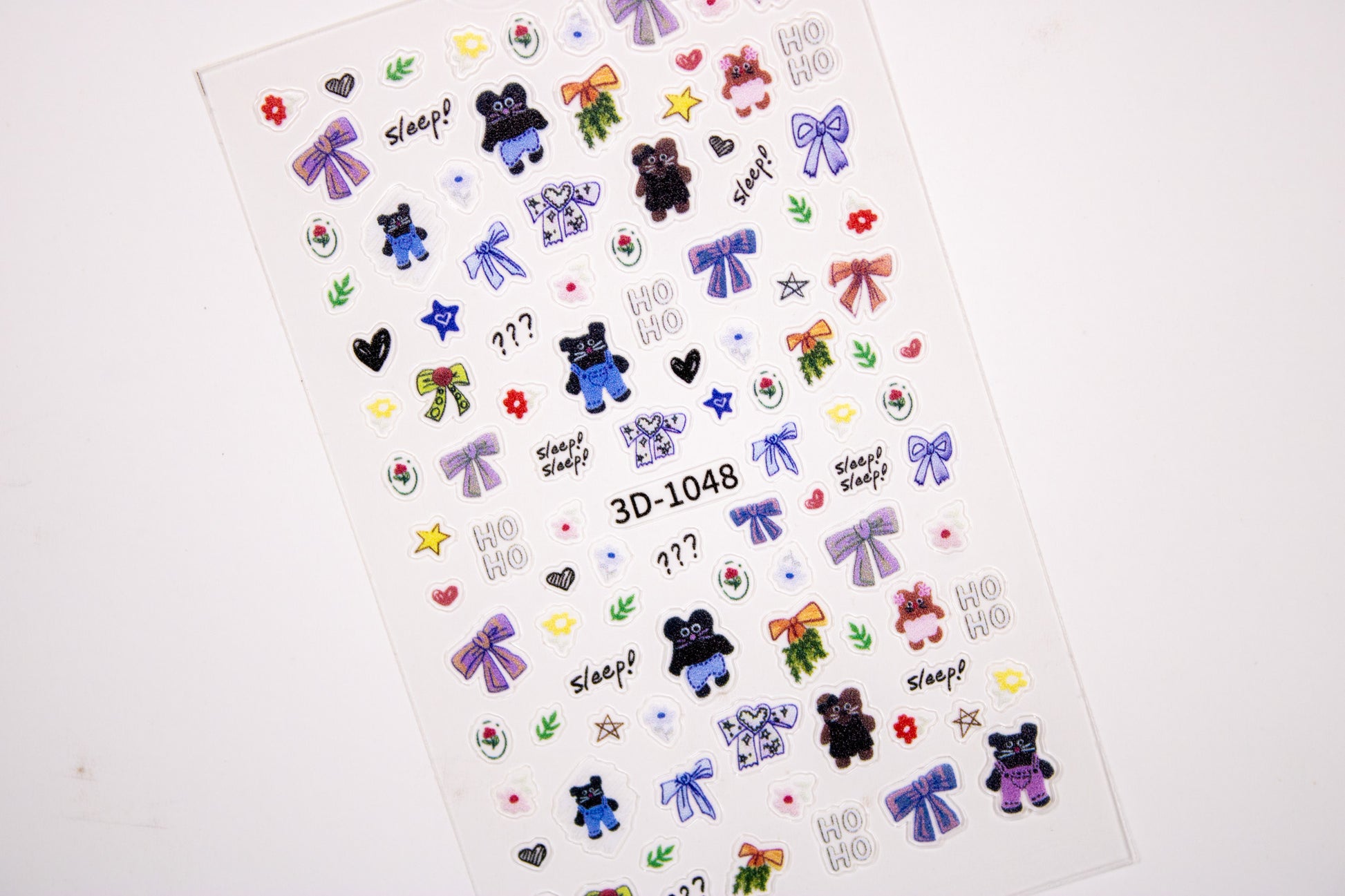 - Includes kitties in black, brown, purple, and pink, assorted bows, hearts, flowers, stars, and playful words like “Sleep” and “HO HO”