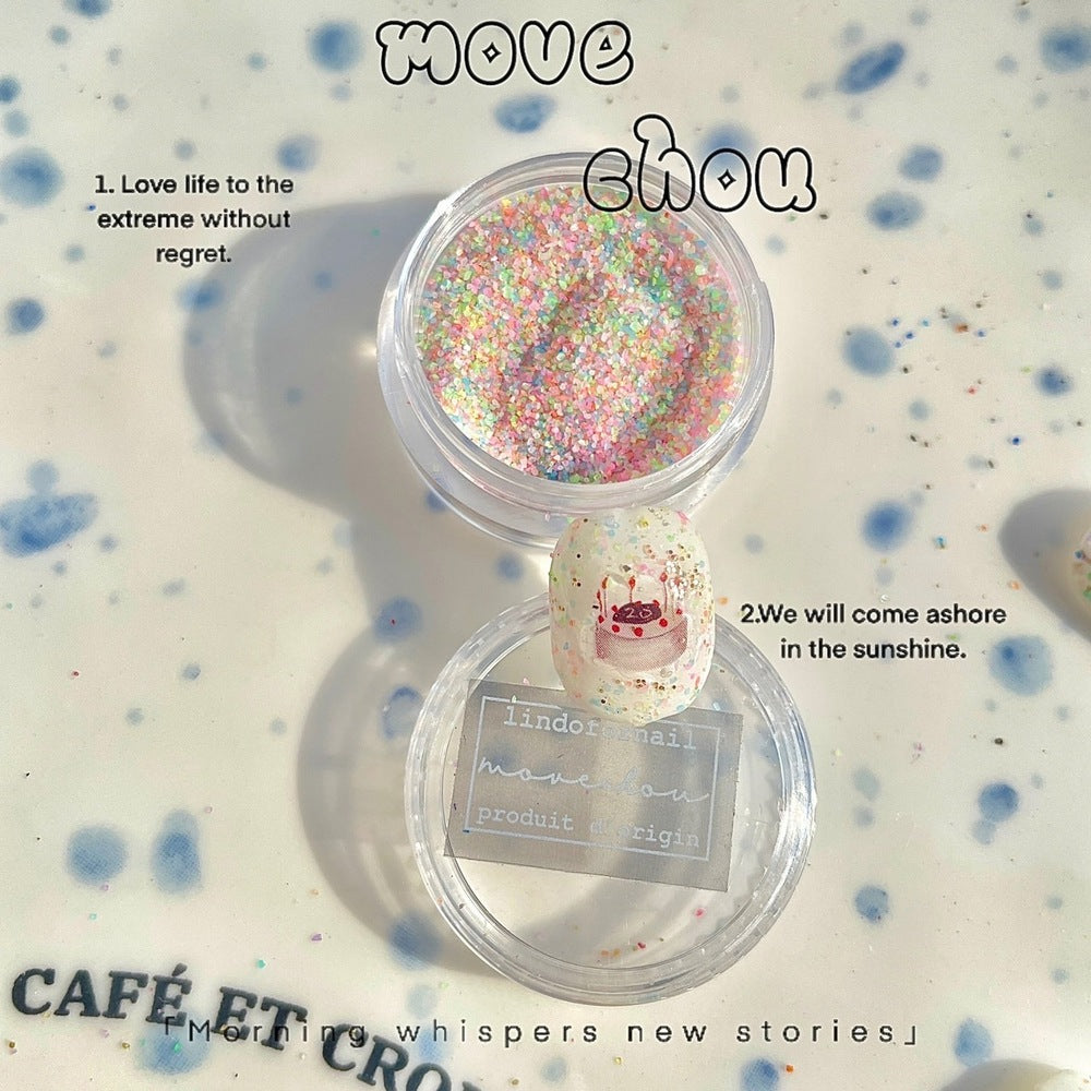 Add a dreamy dusting of sparkle to your nails with this sugar-textured glitter powder — perfect for sweet, frosted effects and whimsical nail designs.