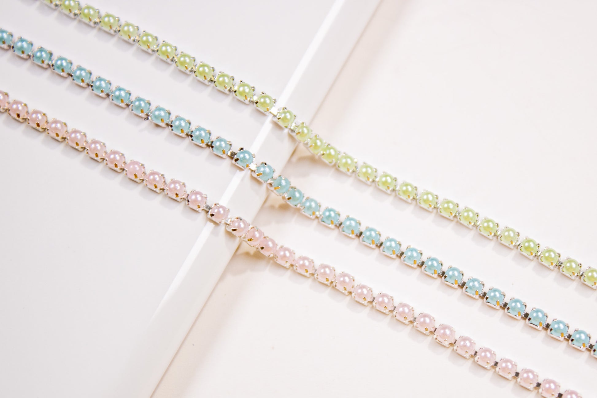 Add a pop of dreamy color to your designs with these 2mm pastel bead chains — shiny, lightweight, and easy to apply for chic accents or playful detailing.
